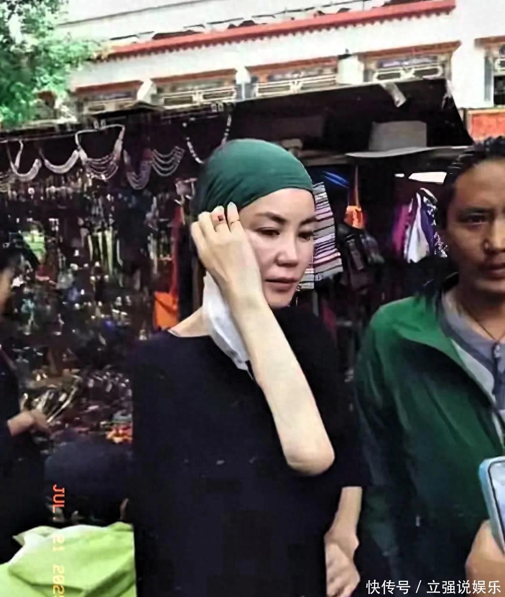 相片里她裹着绿头巾,手部肌肤白得发光,可脸却有些馒化发福,体态也丰腴了不少,岁月陈迹果然显著。
